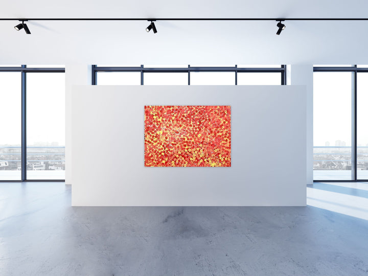 In her more recent paintings she has developed a way of working which sees her lay down a basis of traditional Awelye, women’s body painting, which is then covered, and partly obscured by expressive, coloured dotting. This creates a ‘look through’ effect that is enigmatic but redolent of country and desert colour.